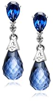 Richly saturated lab-created gemstones are showcased in 10 karat white gold and embellished with genuine diamond accents to create these very elegant dangle earrings. A purple-blue lab-created ceylon briolette, set with a diamond-accented white gold cap, dangles below an additional petite prong-set diamond accent. Above, a deep blue pear-shaped lab-created sapphire stone shines in a three-prong setting. The earrings are subtle in scale and very elegant in their design. They are a perfect complement to an evening outfit, and can easily be worn in the daytime too. The earrings are set on 10 karat white gold posts and fasten with friction back closures.
