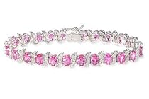 14 1/2 Carat Created Pink Sapphire Sterling Silver Bracelet w/ Diamond Accents