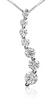 This elegant multi-stone diamond pendant is designed to represent the notion that love is a journey shaped by time and experience. Seven individual prong-set diamonds, with a total weight of 1/2 carat, are graduated in size and arranged along an S-shaped bar of 14 karat white or yellow gold. Much as a three-stone diamond symbolizes your past, present, and future as a couple, a journey diamond represents the continual growth of your life and love together. This beautifully-designed pendant makes a meaningful gift for an anniversary or other special occasion. It is showcased on a delicate and brightly polished gold box chain that measures 18 inches and fastens with a spring ring clasp.