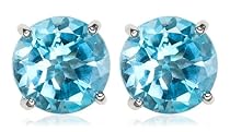 Eye-catching Swiss blue topaz stones do a solo act in these elegant stud earrings, crafted from 14 karat white gold. The medium-sized round-shaped stones have a rich hue and faceted cut that lends them great depth and sparkle. They are held securely in four-prong settings and featured on posts with friction back closures. These earrings make a beautiful gift for someone with a December birthday, or for any woman who loves the vibrant color of Swiss blue topaz.
