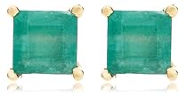 These exciting emerald earrings are fancy yet classic with a 14k yellow gold setting and an ideal everyday style. The square 4mm emeralds are opaque grass green with a slight brownish hue. Popular and durable 14k yellow gold is used for the push backs and the 4-prong settings that secure the facet-cut emerald. Superb colors elevate emeralds to among the most precious gems, and their velvety green hues come from impurities (called inclusions) that cloud the clarity. These fissures in emeralds are also called "a jardin" for their plant-like appearance that deepens their vivid garden shades. Treasured from antiquity as the queen of gems, May's birthstone symbolizes spring and renewal and communicates harmony, beauty, and eternal love. Conveying a joie de vivre, these dainty emerald earrings add a radiant touch for all seasons and reasons.