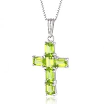 Genuine Emerald Cut Peridot Silver Cross Pendant