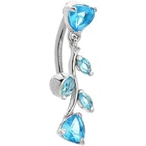 Top Drop Aquamarine HEART VINE Cubic Zirconia Belly Ring